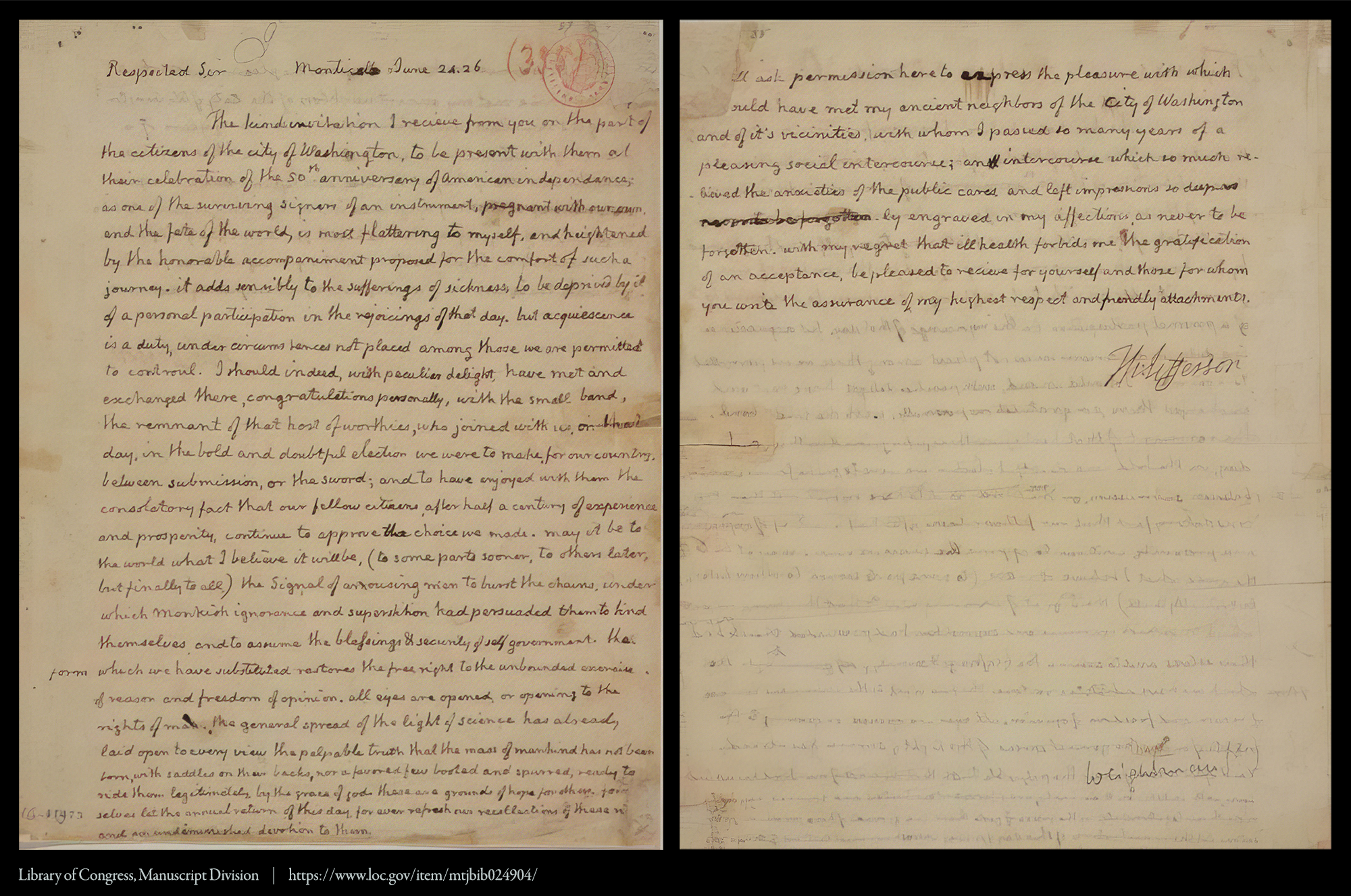 In 1826, Thomas Jefferson was invited by the mayor of Washington, D.C., to celebrate the 50th anniversary of American independence. Although Jefferson’s failing health prevented him from attending, the author of the Declaration replied with his last letter—he died just weeks later on July 4—offering a beautiful reflection on America’s founding and a message of hope for the nation’s future.